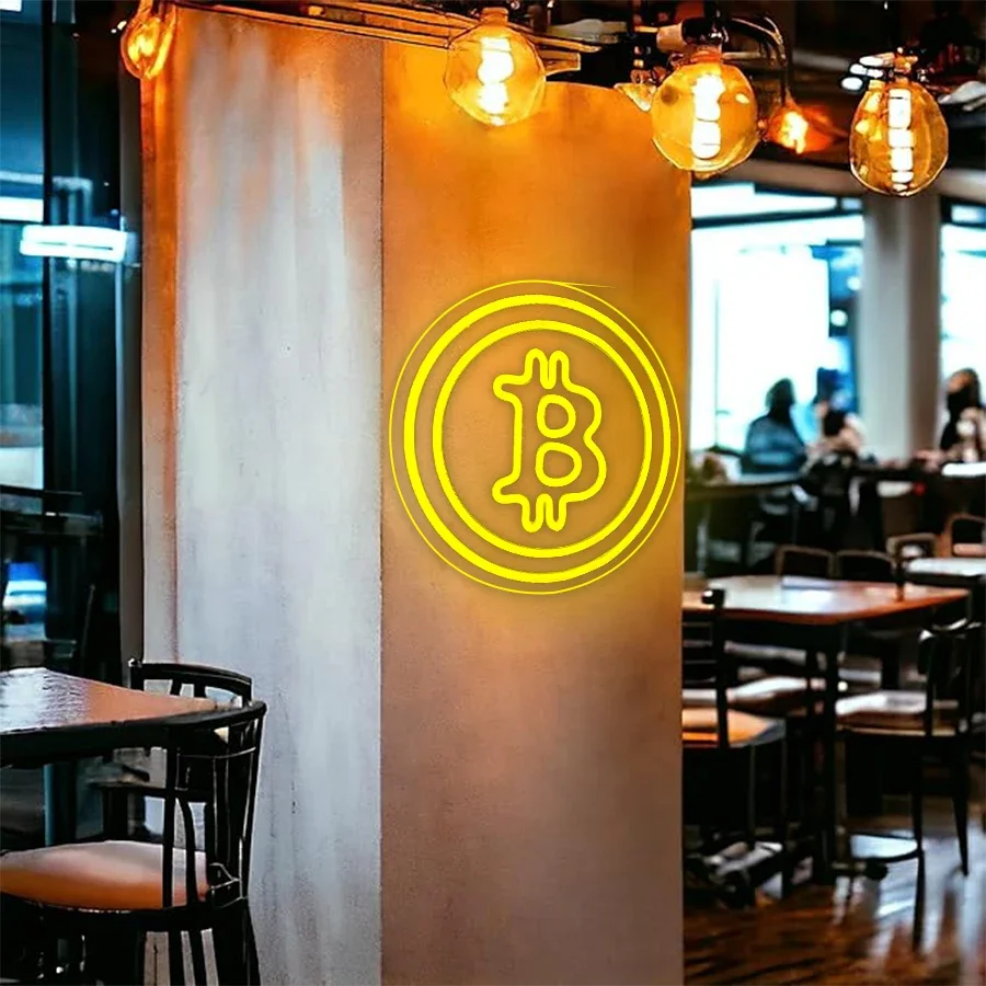 Bitcoin Neon Sign, Handmade Bitcoin Led Neon Light Bitcoin Neon for Wall Décor for Gaming Room Bedroom Living Room Cafe Bar