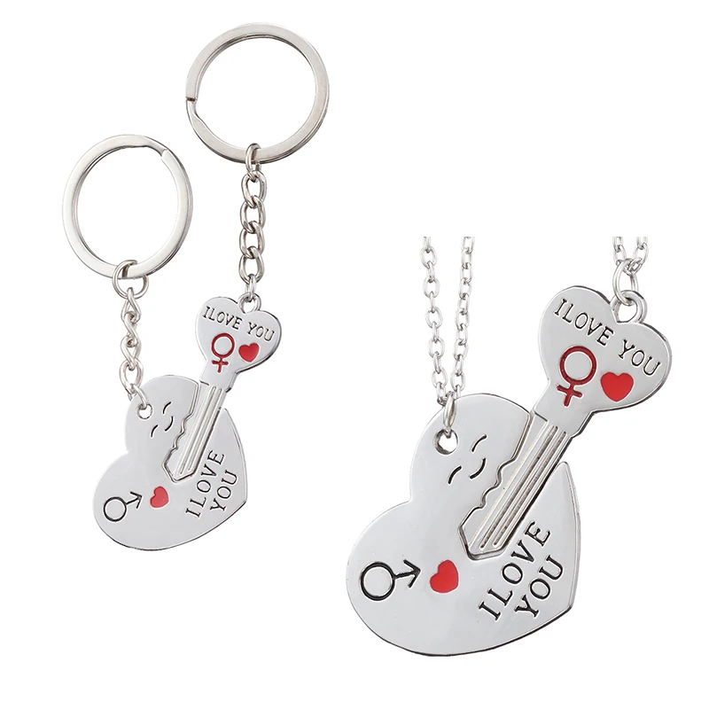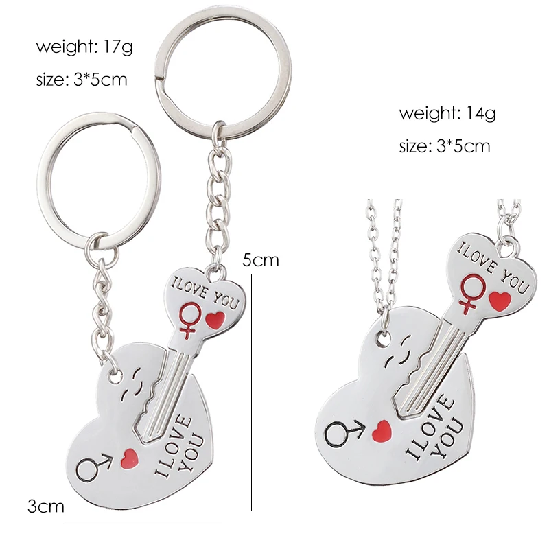 Name:Couple I LOVE YOU Letter Keychain Heart Key Ring Silvery Lovers Love Key Chain Valentine's Day Gifts Jewelry