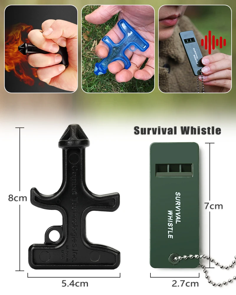 Non-metallic material, can be convenient through train, subway, plane and other security checks. Can be used for camping hiking, emergency survival wild accessories, etc.